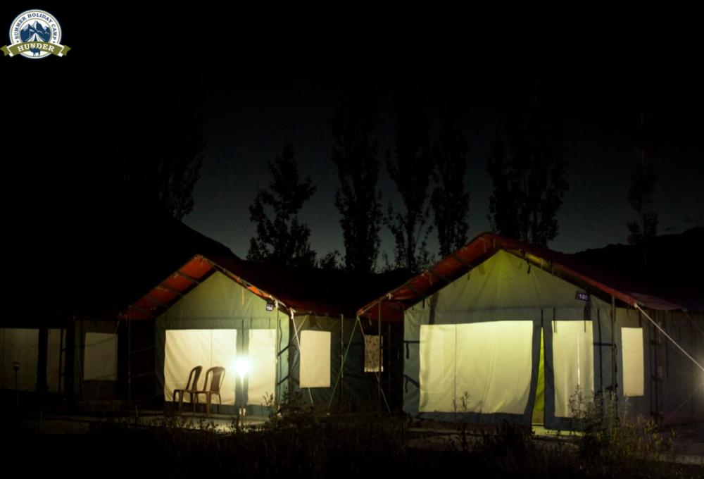 The Summer Holiday Camp offers a cozy stay at the hunder village of Nubra Valley. These are swizz tents appear to be like ancient homes from a birds-eye view & very near to sand dunes.